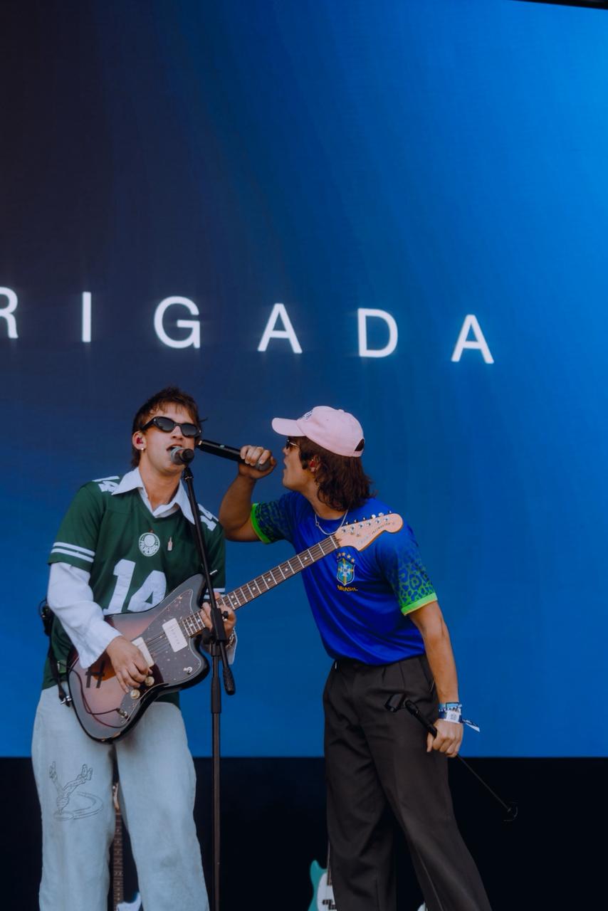 A conexão com o Brasil apareceu também no visual. A dupla subiu ao palco com peças que chamaram atenção, como jaqueta do Brasil e camiseta do Palmeiras, entrando ainda mais no clima do público.