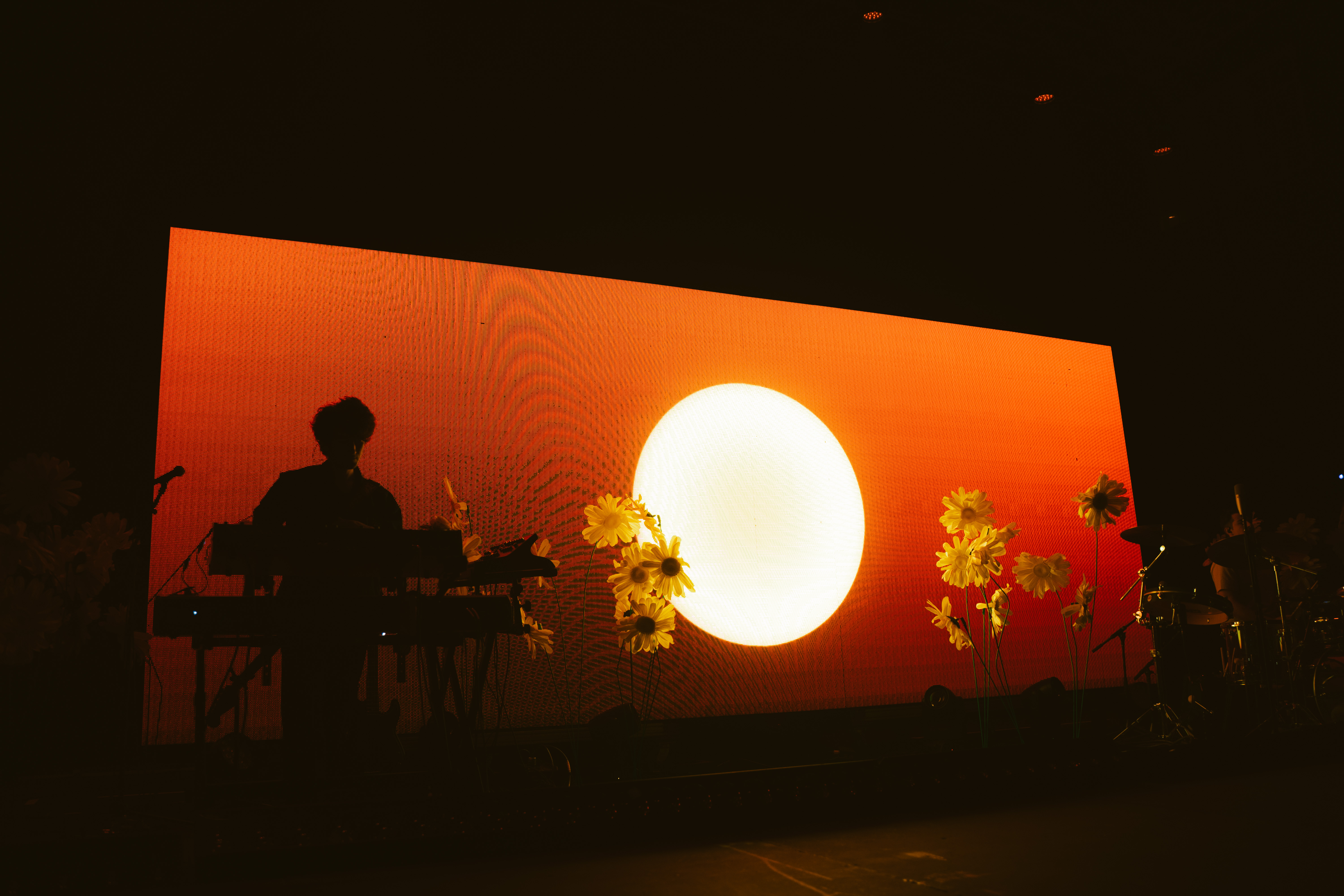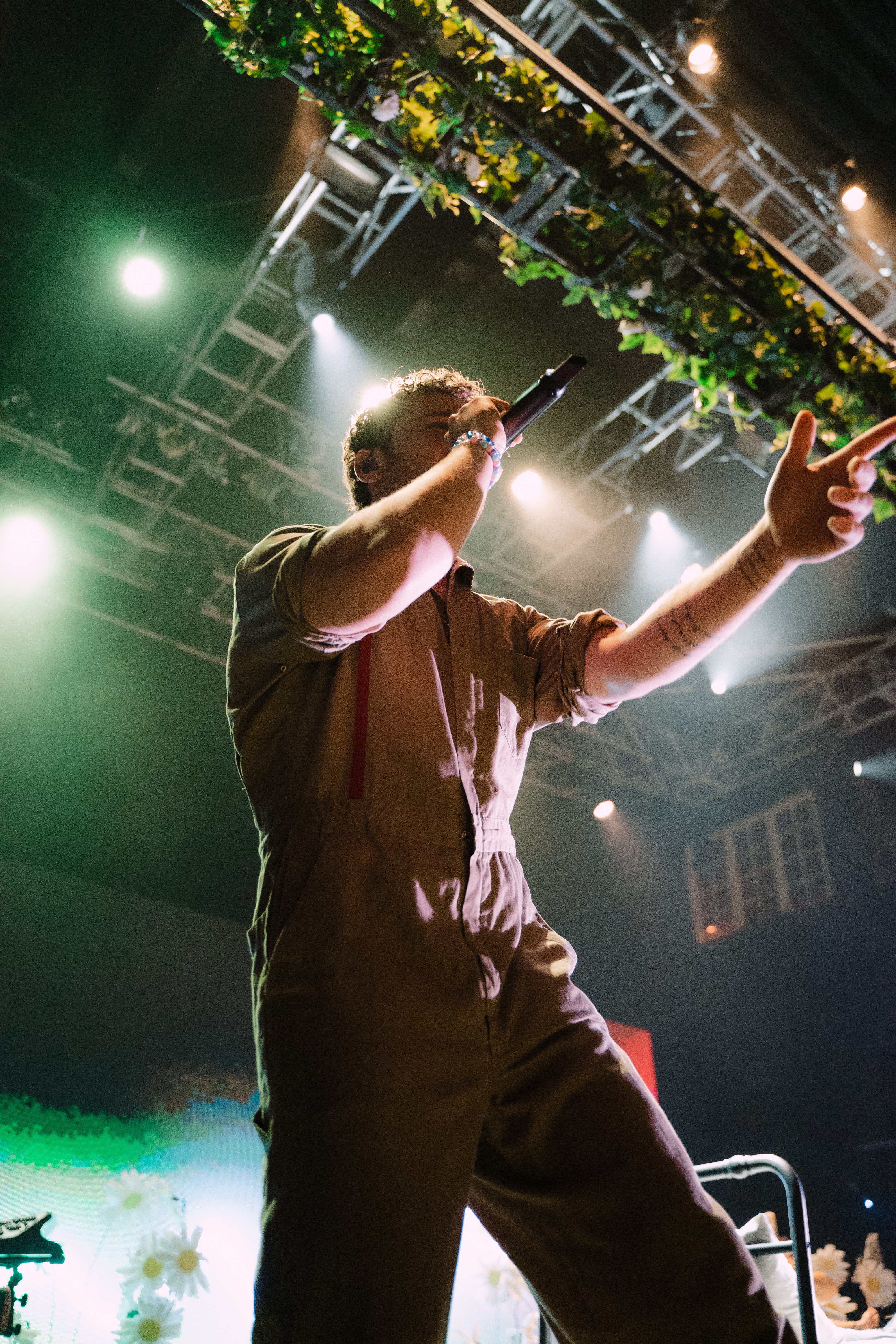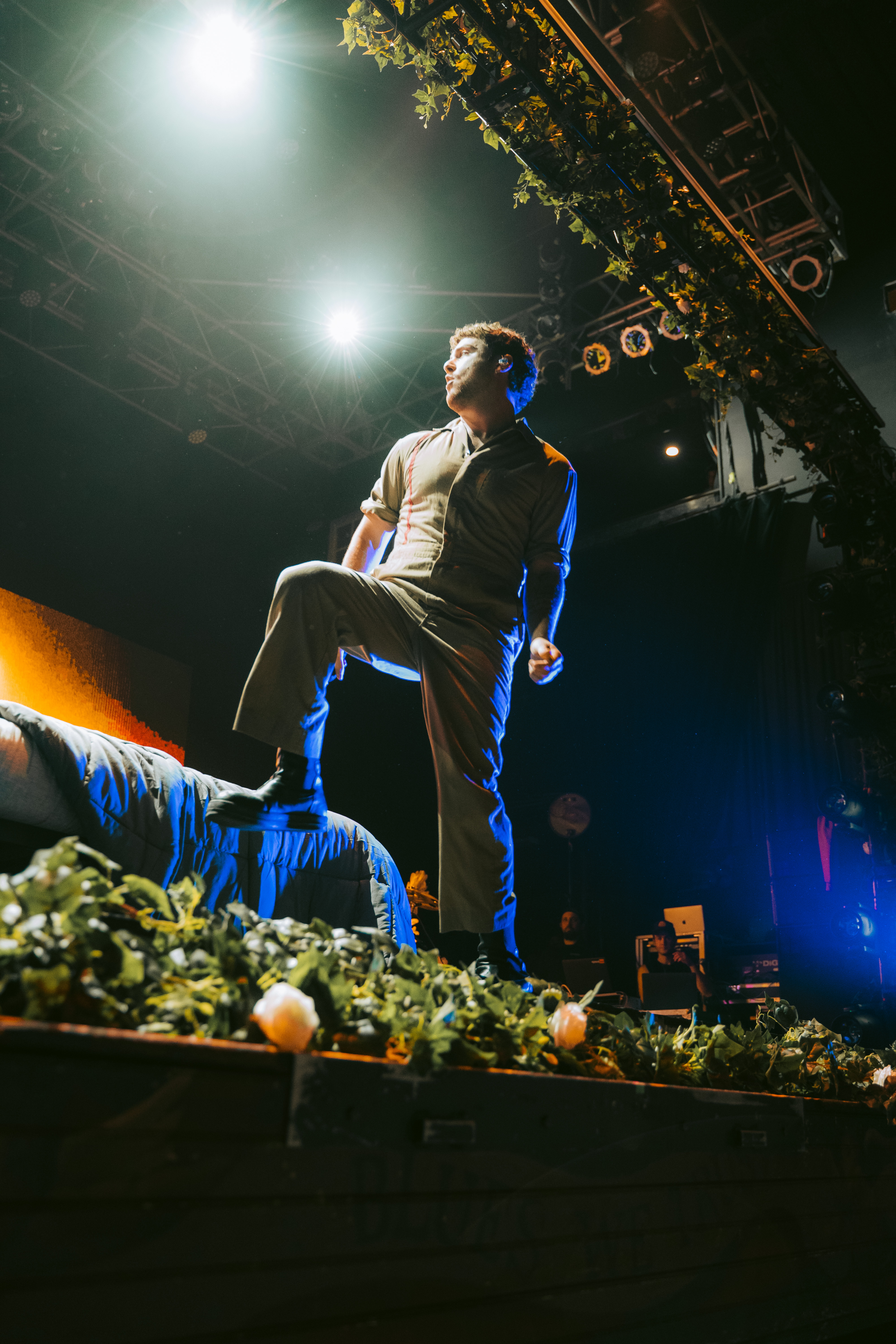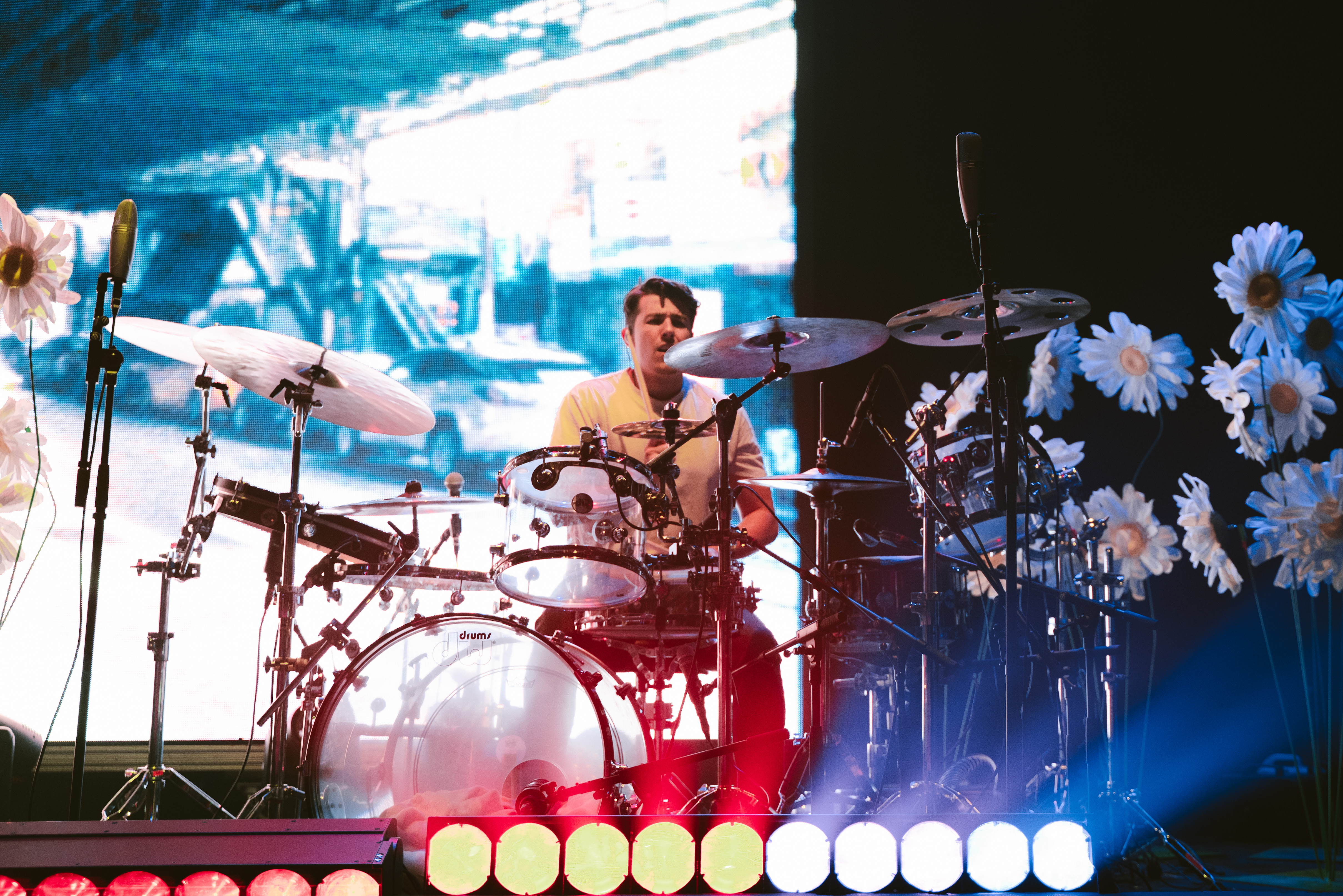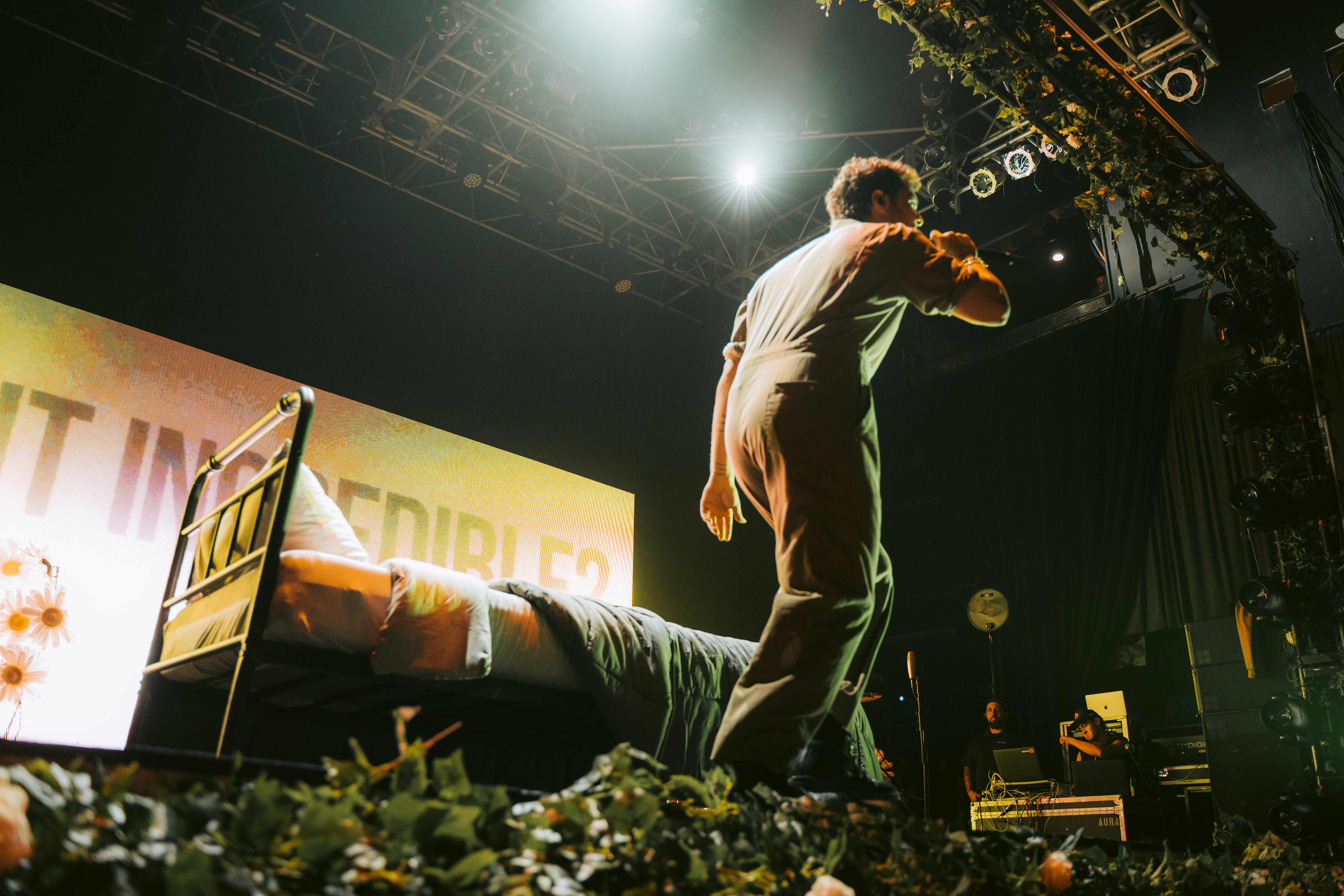 O cenário com flores brancas que mudavam a cor de acordo com a luz e os visuais mudavam a cada música, contando inclusive com uma cama na primeira performance e uma mão inflável segurando um coração que encheu durante as últimas da setlist.
