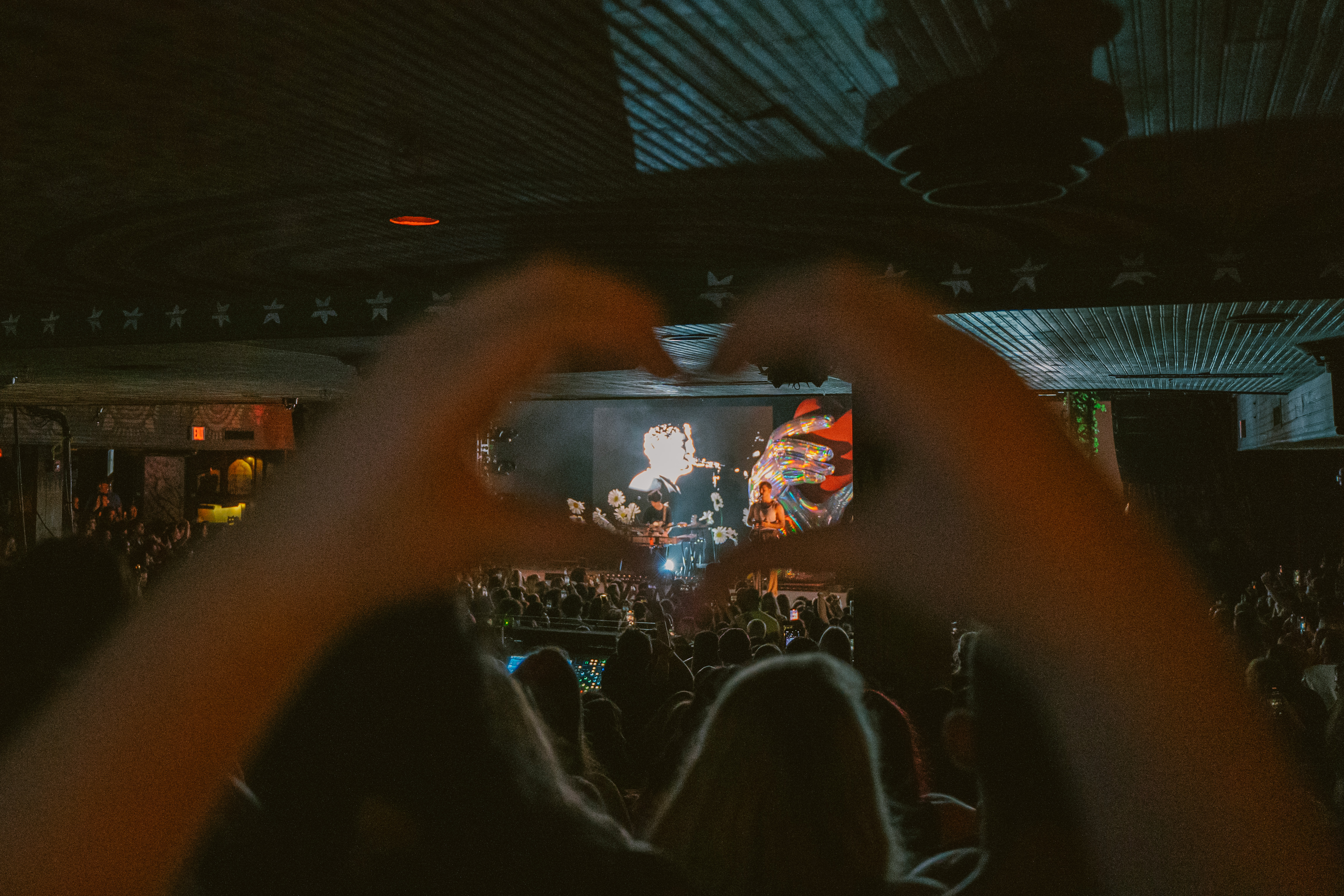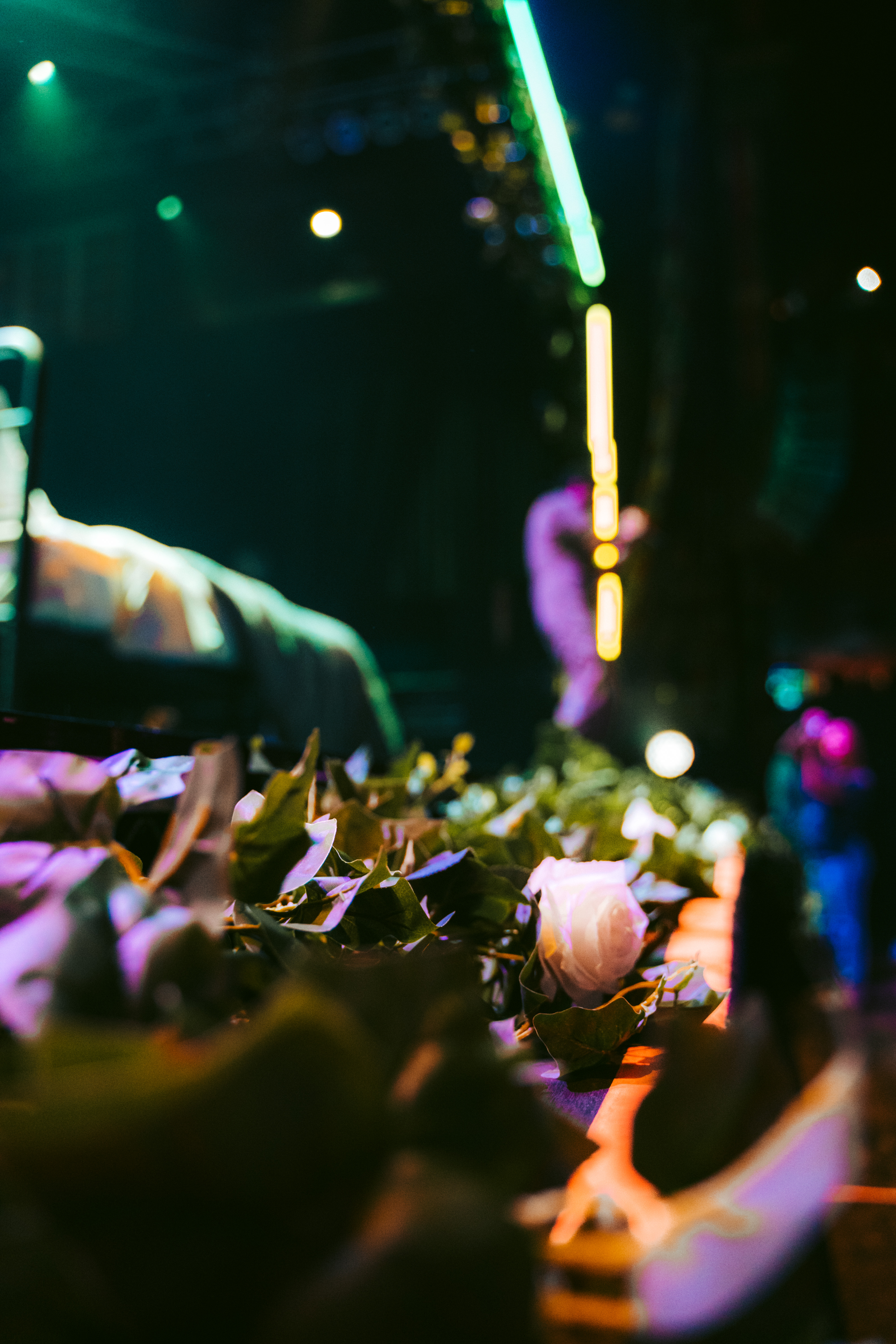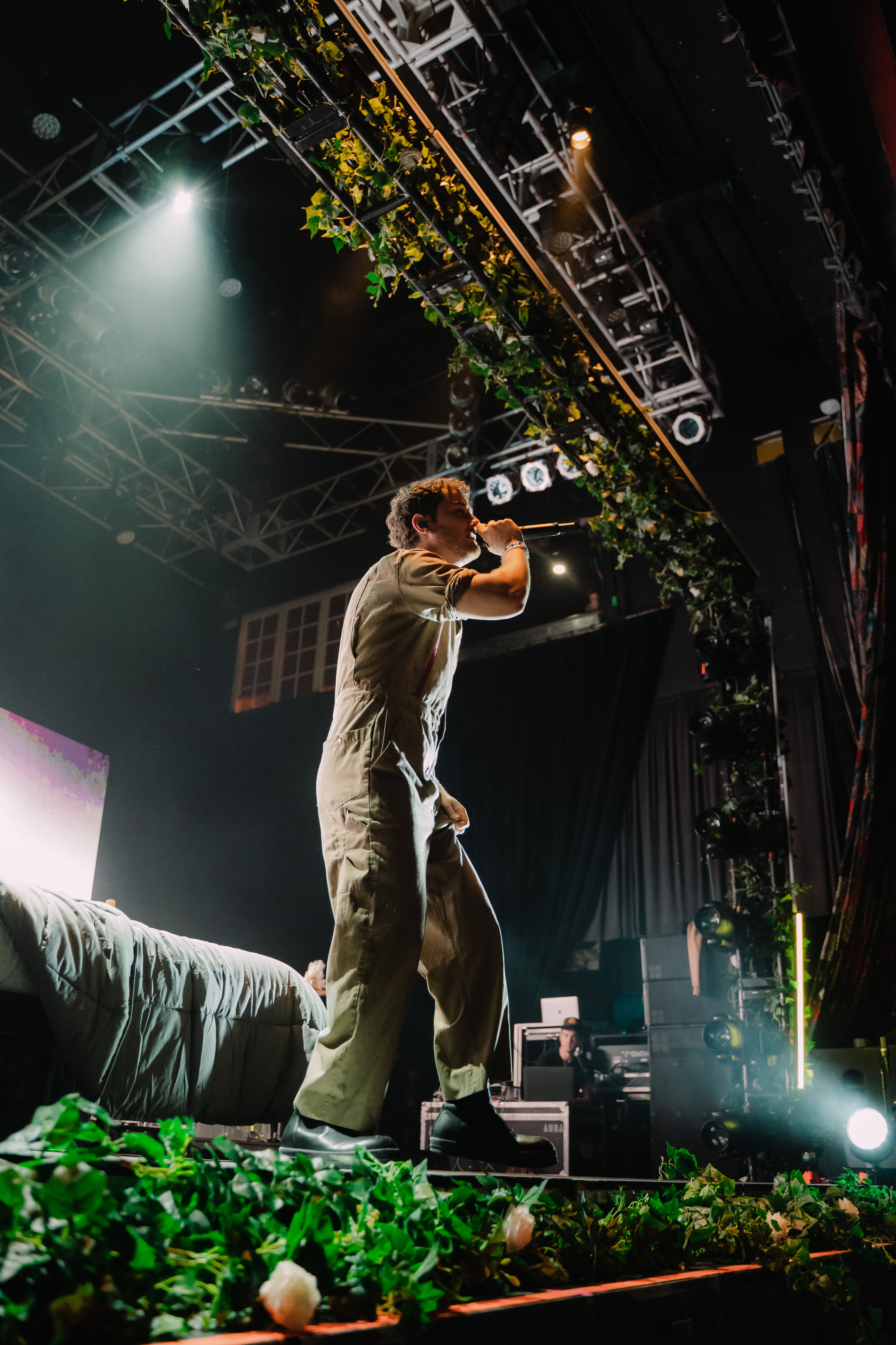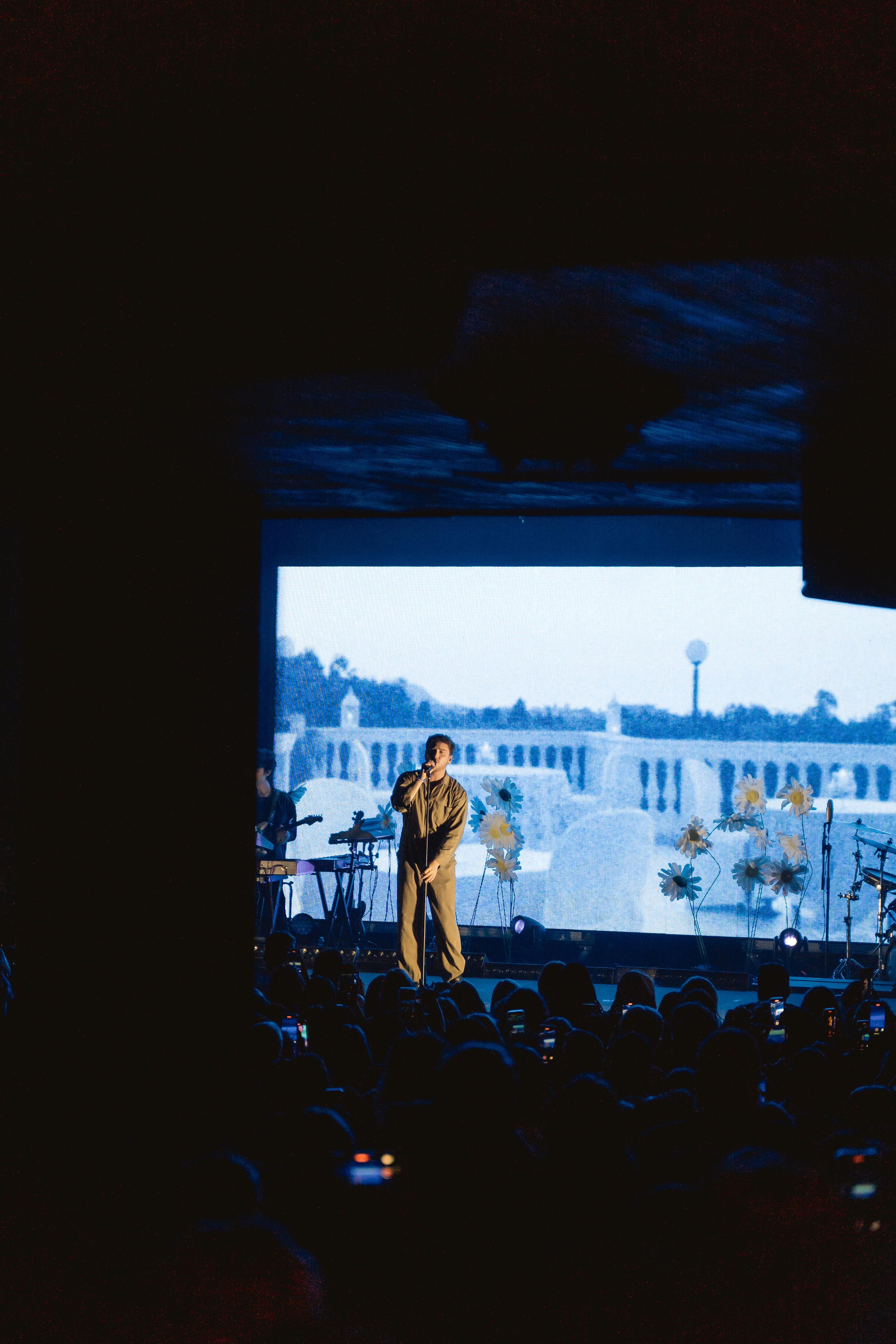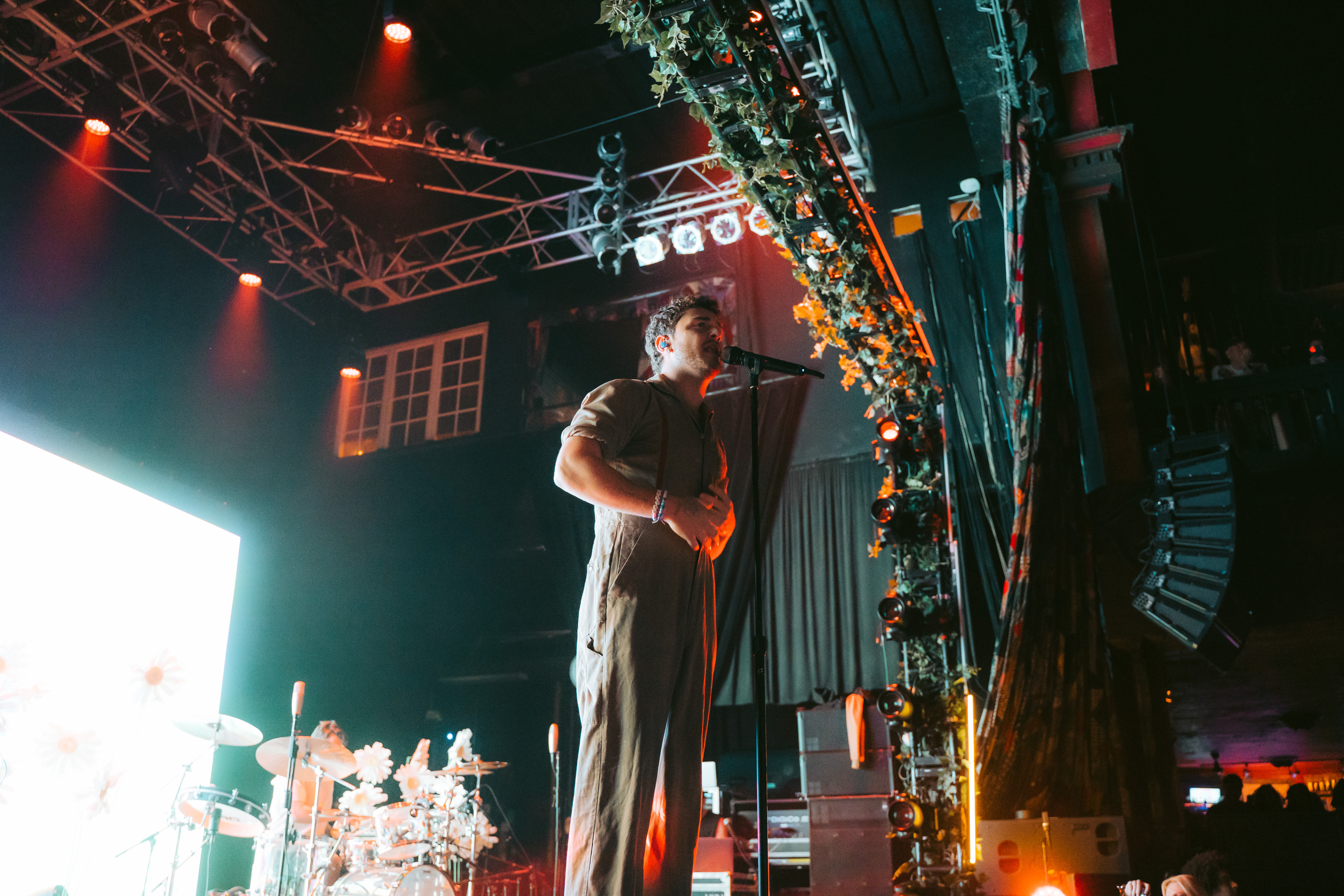 O cenário com flores brancas que mudavam a cor de acordo com a luz e os visuais mudavam a cada música, contando inclusive com uma cama na primeira performance e uma mão inflável segurando um coração que encheu durante as últimas da setlist.
