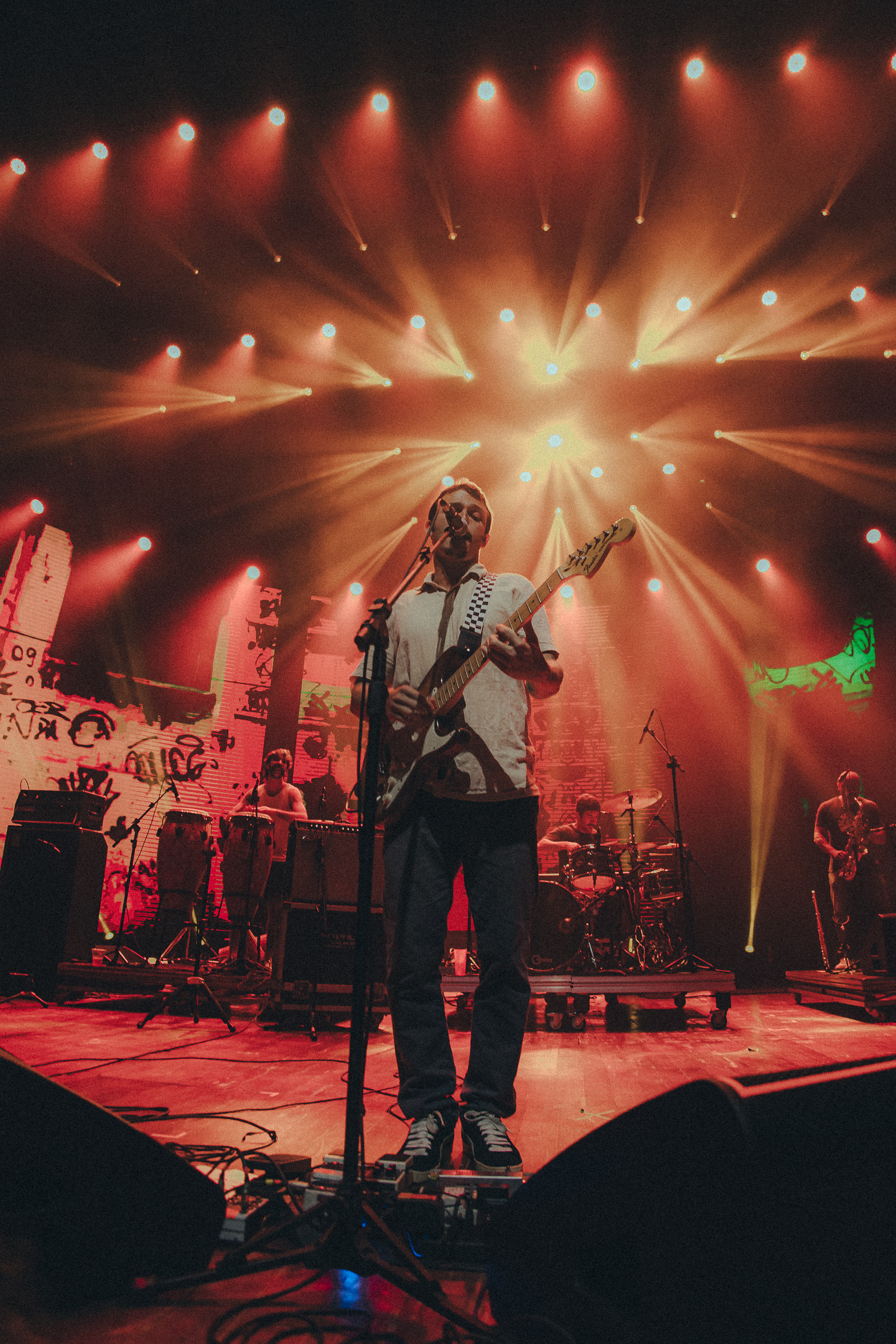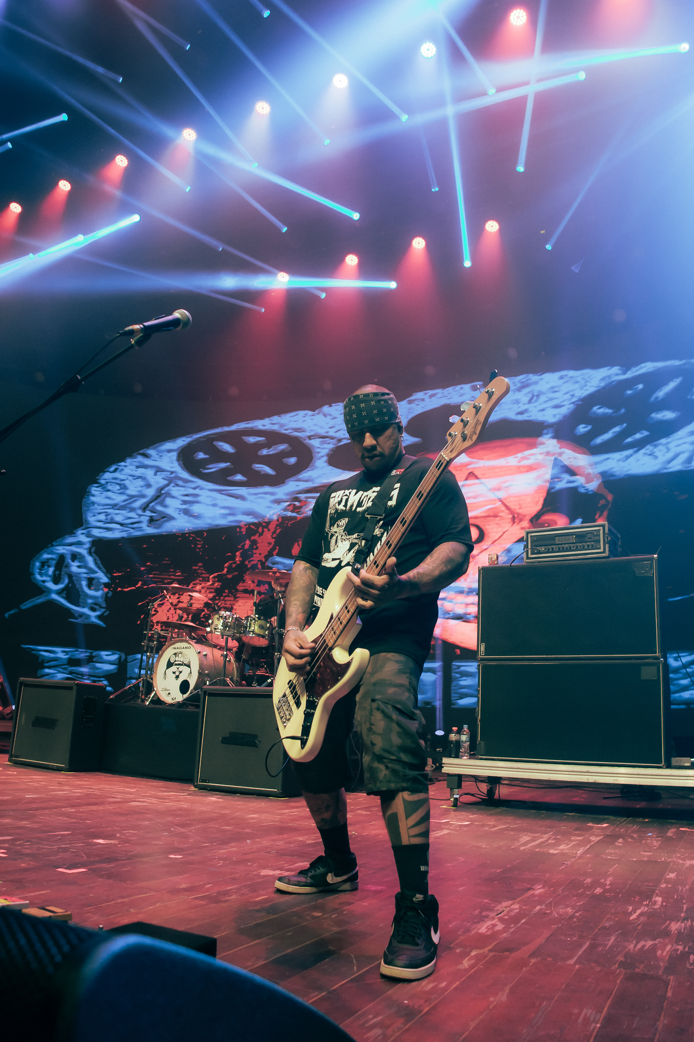 Com instrumentos diferentes como tambor e chocalhos, as imagens do telão também relembravam muito a cultura baiana e o vocalista mesmo disse “Viva a capoeira” no palco.