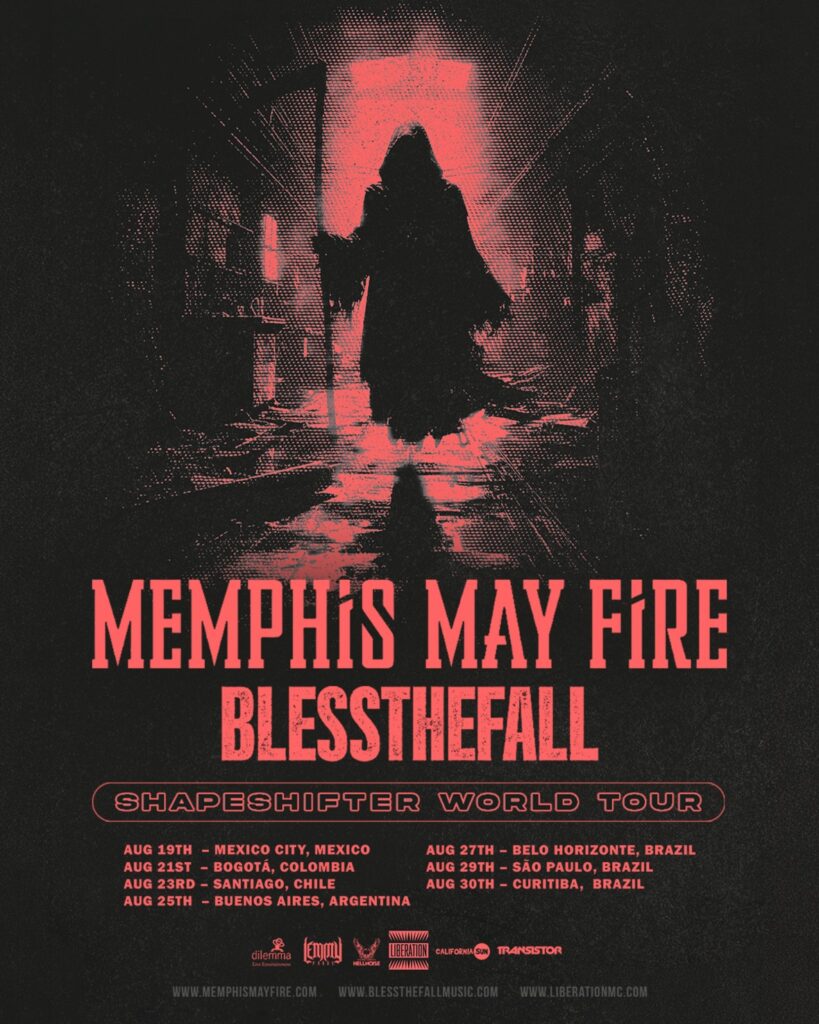 As bandas chegam ao país em momentos importantes de suas discografias. O Memphis May Fire vive a fase de Shapeshifter, oitavo álbum de estúdio lançado em março de 2025 pela Rise Records, que reúne singles como “Chaotic”, “Paralyzed”, “Necessary Evil” e “Overdose”. Produzido e mixado pelo guitarrista Kellen McGregor, o disco mantém a combinação característica da banda entre melodias marcantes e peso.