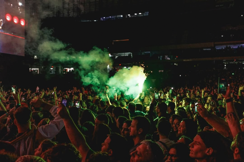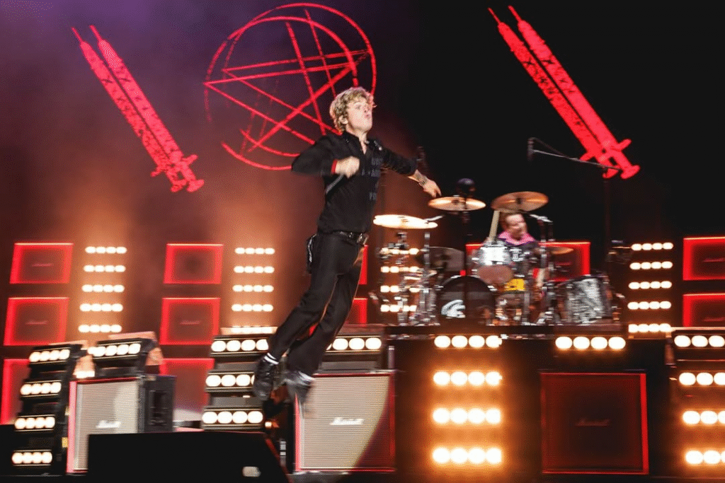 Para acalmar os corações — e arrancar lágrimas do público — “Boulevard of Broken Dreams” entrou de forma majestosa no setlist, carregada de emoção e coro coletivo. Em seguida, a revanche veio com força: uma das favoritas do novo álbum, “One Eye Bastard” resgatou o espírito do punk rock, incendiando novamente a plateia com seus solos marcantes. E, para a surpresa de muitos, “Revolution Radio” também apareceu no repertório, arrancando gritos e levando os fãs ao delírio.